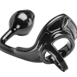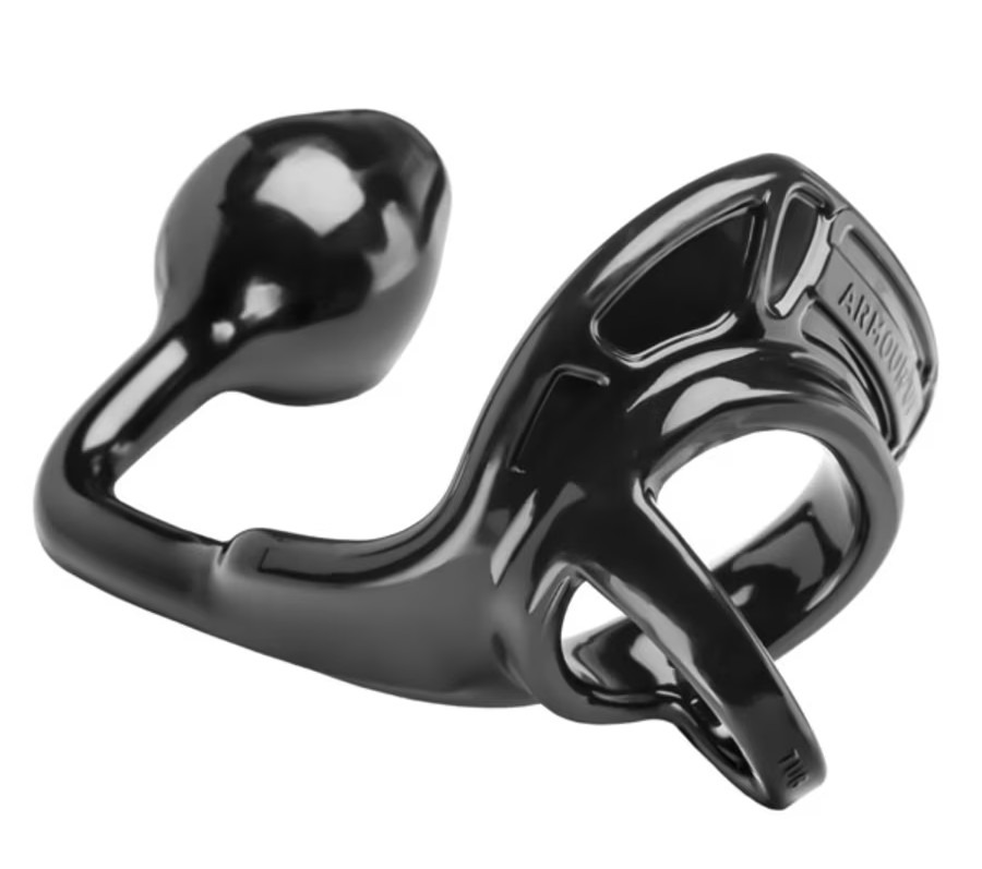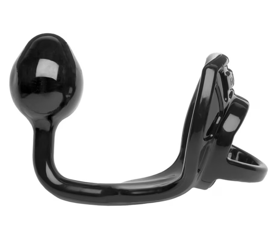 This three-in-one cock ring, ball strap, and butt plug are sure to make an impression.