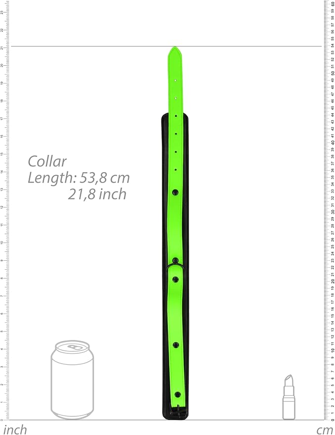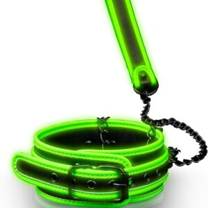 This adjustable glow-in-the-dark bonded leather collar can be used with or without the leash to lead you into a world of pleasures in the dark.
