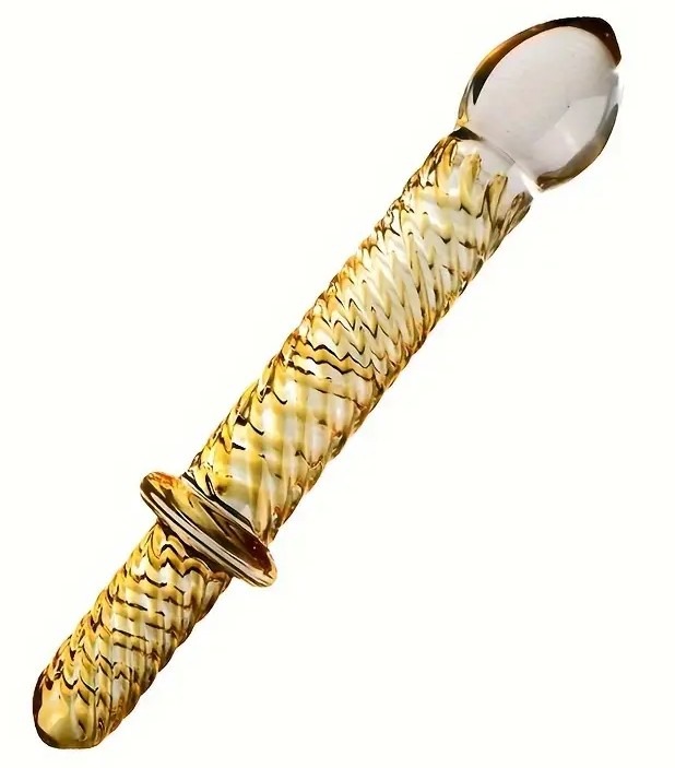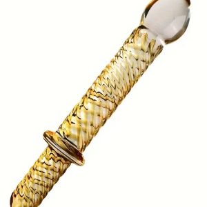 Crafted from high-quality, body-safe crystal glass, this gold dildo features an elegant design with textured shaft for added sensation.