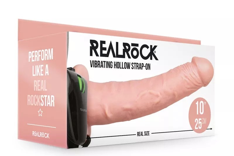 Step into the spotlight and become the legend you've always wanted to be with the 10" Hollow Vibrating Strap On System.